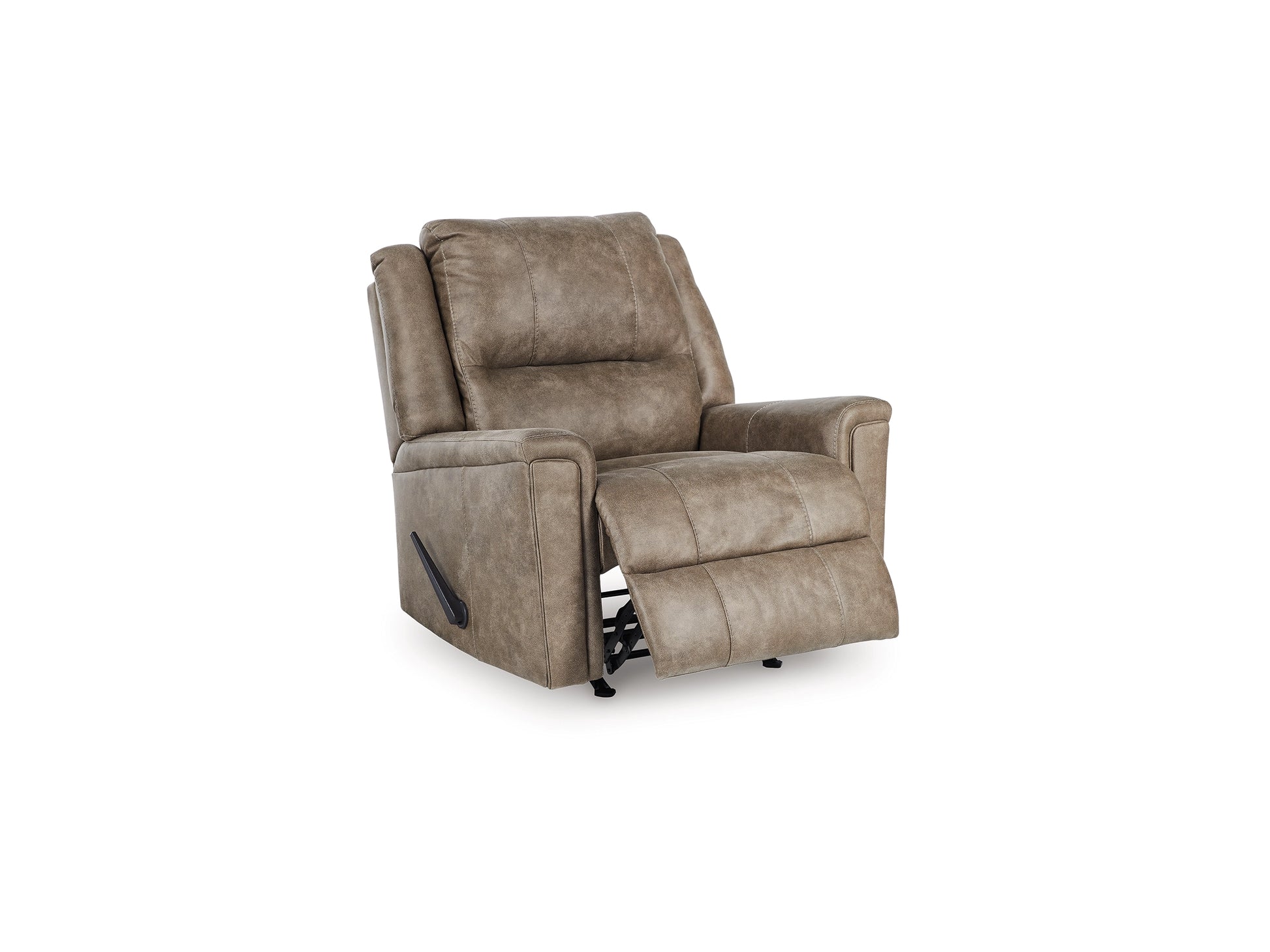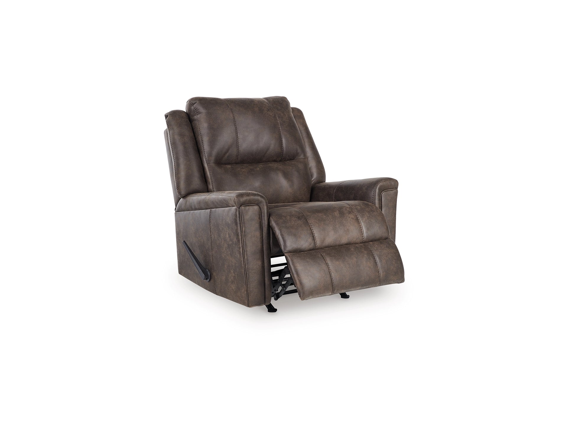 Description: When it comes to the exquisite, decadent styling of the Skymaker rocker recliner, sitting is believing. Its generous seat and tall back are specially crafted to provide extra support and comfort for broader and taller individuals. This recliner is made for easy and instant relaxation, with pull tab reclining and pillowy cushioning covered in smooth faux leather. This recliner includes: Pull tab reclining motion, corner-blocked frame with metal reinforced seat, attached cushions, high-quality foam cushions wrapped in poly fiber, gentle rocking motion.